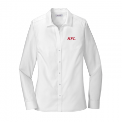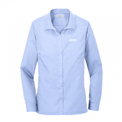 Thoroughly updated, this crisp nailhead shirt has a silky feel and a wrinkle-resistant finish for exceptional non-iron performance. 4-ounce, 60/40 cotton/polyester with taped seams, RH engraved buttons and a shirttail hem to elevate the office-ready look. Classic feminine styling with an open collar, bust darts and back seaming. Notched adjustable cuffs and button-through sleeve plackets.
