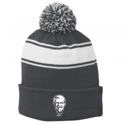 A fan fave: a classic beanie with three stripes and a two-tone pom.